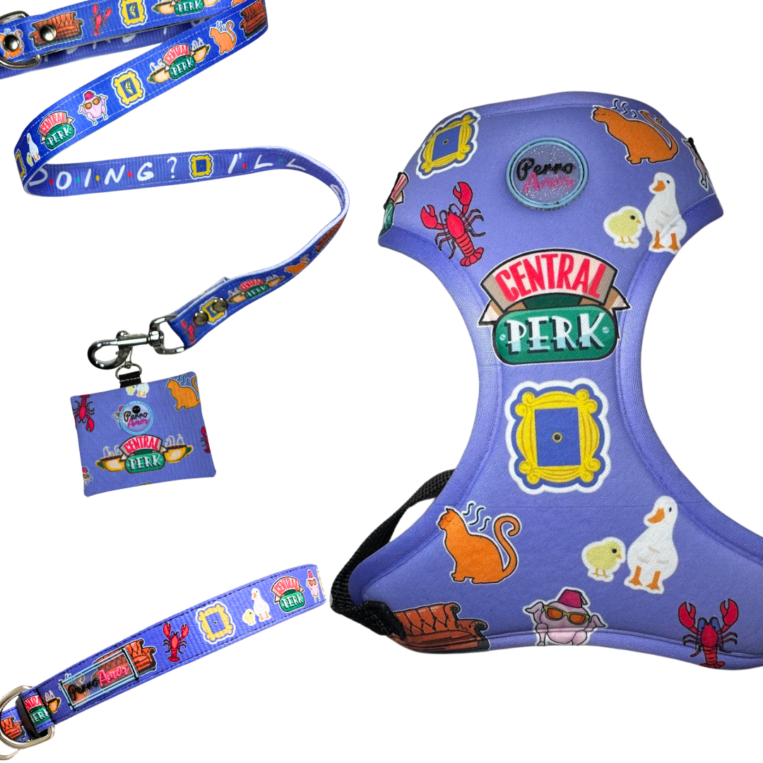 En este Kit encontrarás todos los productos del mismo diseño. Incluye Collar Milagro , Correa Binomio , Pechera y Dispensador del Bolsitas.