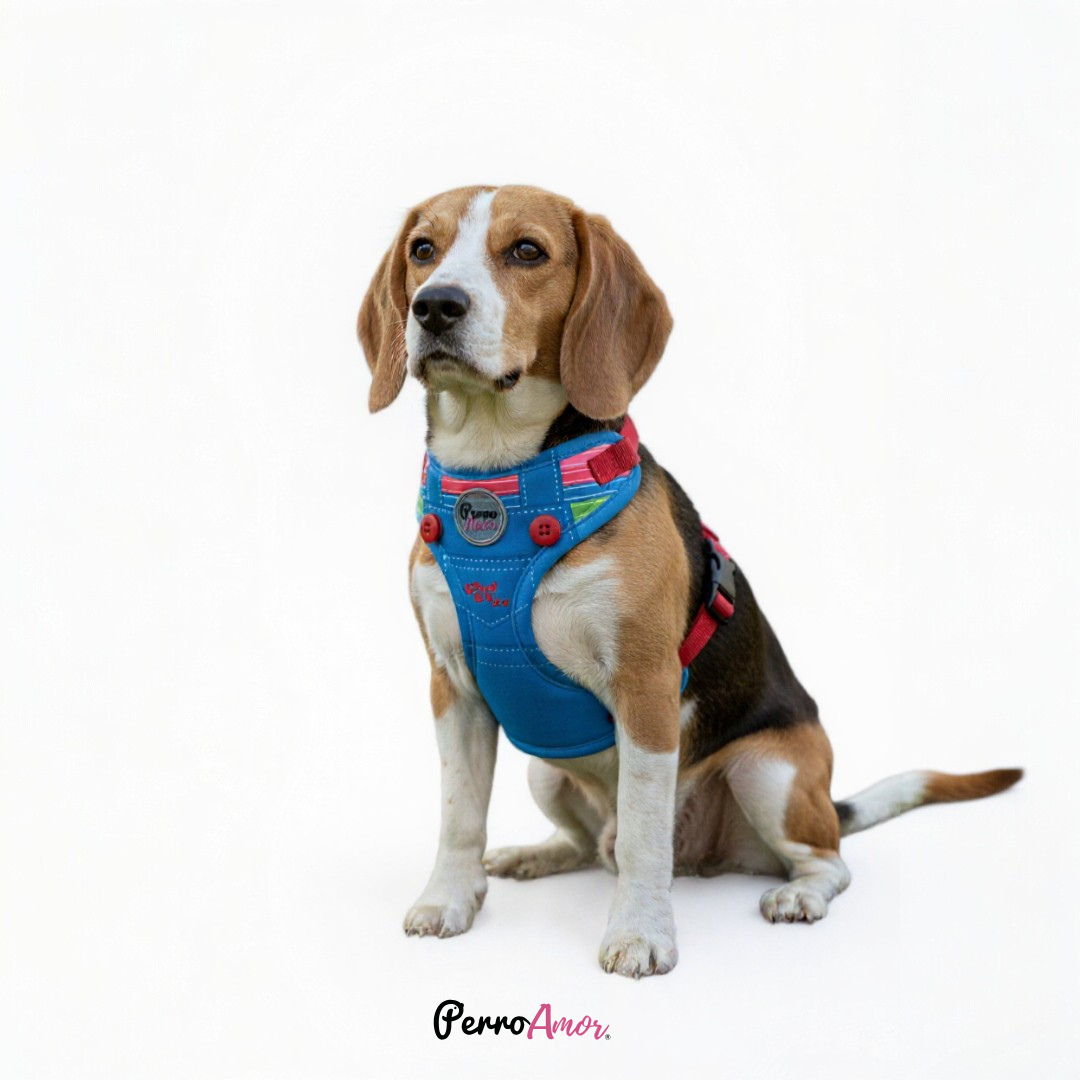 Nuestra Pechera para perro tiene un diseño increíble en la parte frontal para que tu perrito nunca pierda el estilo, en la parte interior tiene una delgada esponja para que sea más cómoda y finalmente está cubierta con una malla transpirable, en la parte exterior usamos un material suave que evita que se lastime. Incluye cinta de nylon, una argolla circular y 3 puntos ajustables. Tiene un “D ring” el cual se conecta con la correa y un broche tiempo samsonite.